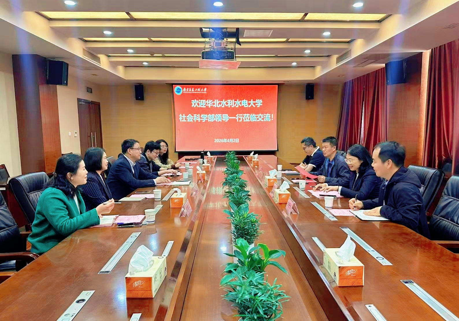 4月2日下午,华北水利水电大学社会科学部一行来我校开展人文社科发展专题调研交流。我校社会科学处处长尹才祥、文学院院长赵霞以及社科处相关人员参加座谈,会议由尹才祥主持。