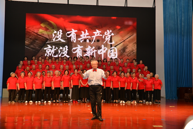 现场首先播放了我校离退休老同志前期“四史”学习教育开展情况,接下来逐一展示“七个一”活动:“一部剧”——《沂蒙红嫂》的深情演绎,让人深切感受到军民“水乳交融、生死与共”的鱼水深情;“一堂(党)课”——陈学诚老师的《学党史悟思想与信仰对话》和赵海燕老师《百年初心情,波澜壮阔路——根植于党心中的人民情怀》党课讲授,朴实深刻触及灵魂,更加坚定了我们的道路自信和理论自信,更加坚定了中国共产党的领导; “一套拳”——太极拳展示,中正安舒、刚柔相济、潇洒飘逸,既弘扬了中华民族优秀传统文化,也体现了老同志们热爱生活、积极向上的生活态度;“一篇文”——有感悟国泰民安,矢志教书育人,也有回望光荣校史,传承信大精神,更有追忆百年党史,感恩伟大时代。严燕、万长建等老师和学生饱含深情的老少共诵,使在场的人深刻感受到老同志们的拳拳赤子心与殷殷爱党情;“一支舞”——集体舞表演《最美的歌唱给妈妈》,飘逸优美,真情表达了老同志们对母亲、对党、对祖国的深爱之情;“一幅画(书画、摄影)”的视频播放,美轮美奂、意境深远,让大家真切感受百年征程波澜壮阔,以及老同志们对美好生活的无限憧憬和追求; “一首歌”——老同志们的合唱《没有共产党就没有新中国》、《跟着共产党走》气势磅礴、感心动耳,老同志们发自内心地唱出了中国人的心声——没有共产党,就没有华夏儿女的骄傲和自豪;没有共产党,就没有中华民族的复兴和辉煌。