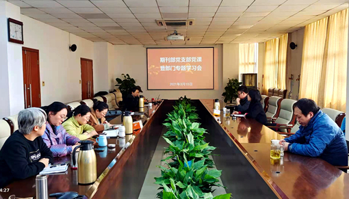 3月10日下午,为深入贯彻落实习近平总书记在党史学习教育动员大会上的重要讲话精神,落实中央、省委和学校关于党史学习教育的部署要求,期刊部党支部邀请部门全体员工在行政楼628会议室参加开学第二次党课学习。本次学习由《阅江学刊》编辑沈丹主讲,期刊部党支部书记周彩红主持。