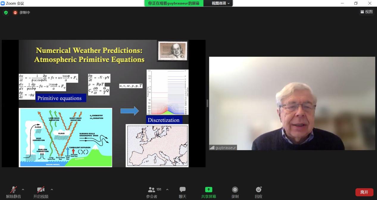2月23日下午,国际气象教育与科学研究协会(IAMES)“科学大讲堂”第18讲顺利举行,这也是2022年讲堂首次开讲。马克斯-普朗克气象研究所环境模拟组负责人、世界气候研究计划联合科学委员会前主席Guy P. Brasseur教授受邀作题为“Predictability of the Multiscale Evolution of the Earth System”的专题讲座。讲座由国际合作与交流处处长章炎麟教授主持,近200名师生线上参与本次讲座,共2000余名听众观看线上直播。