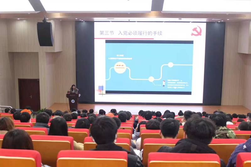 接着,袁晴老师向与会学生介绍了党章规定的党员条件,并详细介绍了党员的“八大义务”和“八大权利”,要求所有入党的同志要按照党章标准严格要求自己,要以实际行动做合格党员。最后,袁晴老师结合党员发展工作的基本流程,详细讲解了党员发展中每个环节必须履行的手续,并提出入党的同志必须牢记,一个人在组织上入了党,只是自己政治生活新的开端,要把入党作为继续前进的新起点,真正实践自己的入党誓言,使自己无愧于共产党员这一光荣的称号。