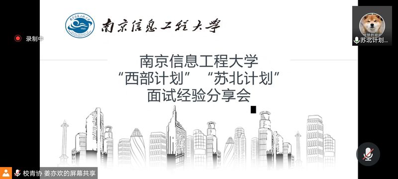 我校一直以来高度重视“西部计划”“苏北计划”志愿者选拔、派遣工作。2020年共选派“西部计划”志愿者18人、“苏北计划”志愿者12人,并多次获评全国“西部计划”绩效考核优秀等次高校项目办、江苏省“苏北计划”优秀组织奖。此次 “西部计划”“苏北计划” 面试经验分享会为同学参与省级面试提供了有效指导,也向同学们传递了“奉献、有爱、互助、进步”的志愿者精神,同时鼓励同学们用一年不长的时间做一件终生难忘的事,到祖国最需要的地方建功立业。
