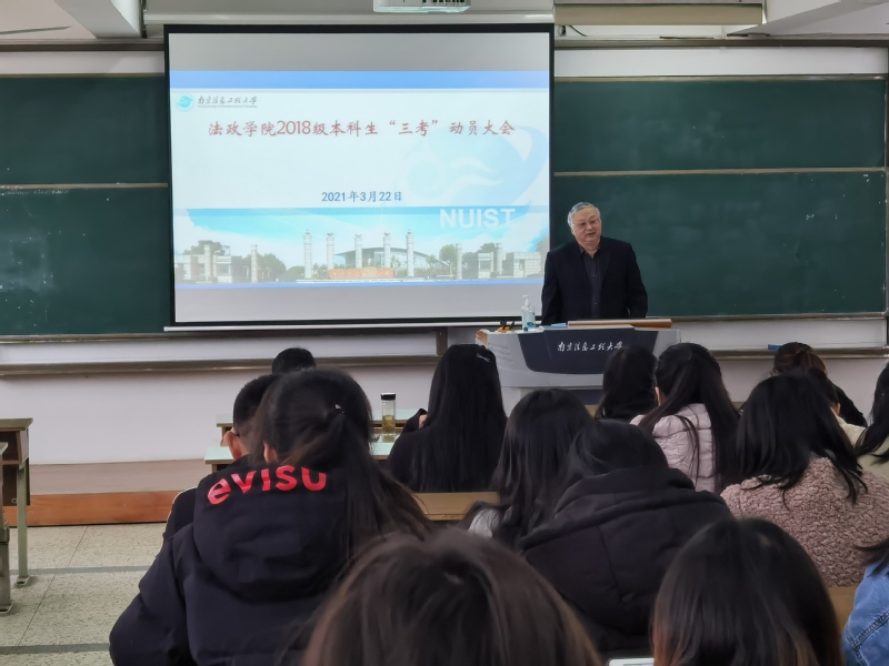 3月22日下午,法政学院于滨江楼N201教室举行了2018级本科生“三考”动员大会,以帮助同学们了解考研、司法考试以及考公考编的相关信息。本次动员大会由法政学院副书记、副院长朱文镇老师主持,大会特别邀请了法政学院苏向荣教授、凌萍萍副教授以及我校马克思主义学院徐海红教授到会宣讲考公考编和硕士招生政策,同时还邀请了信大教育、众合教育的两位专业培训老师,来为同学们做“三考”分享。