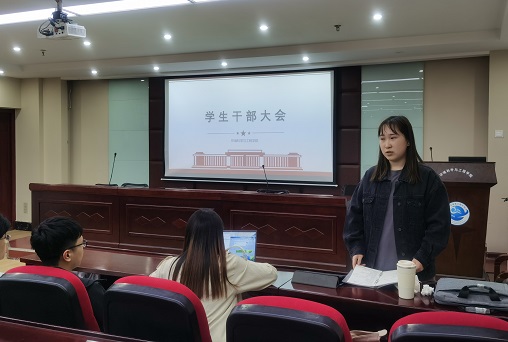 毕凡舒首先对学生会的工作成效、班级工作取得的成绩进行总结,并对未来的工作提出要求和建议,尤其在学校、学院、班级三位一体的联动方面,要求干部们积极配合完成工作任务,科学管理,加强上下级沟通,充分发挥作用,并鼓励同学们踊跃投身于学生工作,加强班级建设和团学组织建设。毕凡舒认为,学生之事无小事,要求学生干部将工作沉下去。她鼓励积极建言献策,提出学院和班级建设上的建议及想法,学生会将不断整改,提升工作效能,将工作落到实处。