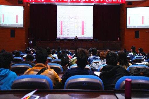 随后,高盛蔷也为准备就业的同学进行了详细的指导和解读。他列举了公务员录取比例中不同大学所拥有资源的差异性,说明南信大双一流平台的地位与重要性,鼓励和教育同学爱校荣校,明确个人与集体的关系,知晓个人行为与社会评价的密切关系。此外他还就人生未来发展可能遇到多维度的压力困境作了分析,提醒学生把握发展机遇,迎难而上,通过理性思考克服或避免各种困难。鼓励同学们,以各单位就业要求为基础,早日满足获取毕业证和学位证的基本要求,轻装上阵。希望同学们不要“假装”努力,而是要取得脚踏实地的进步。