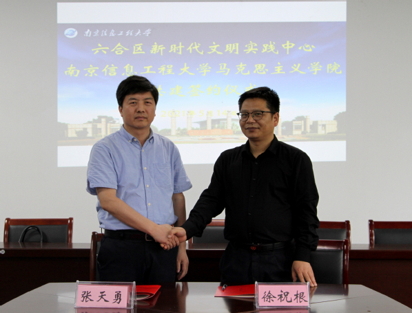 5月14日上午,六合区委宣传部副部长徐祝根一行来访马院,双方就如何发挥学院理论研究优势,加强地方党史学习教育、理论宣讲、科学服务地方等方面,进行深入交流,并签订了合作共建协议。六合区委宣传部任晓勇主任,马院院长张天勇、副院长杨长年、党总支副书记、副院长方群参加会议。