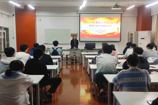10月21号下午,自动化学院在学科三号楼S205举行了2021年度菁英人才培训班开班仪式暨新生团支书培训大会,院团委书记杜林、学习就业中心主任孙晨、全体新生团支书及团委新生干事参加了此次会议,会议由院团委副书记陆睿主持。
