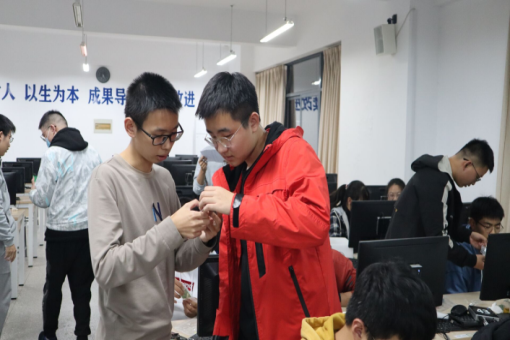 在实践环节,丁学长详细讲解了电烙铁的使用方法,同学们也在助教的指导下亲手进行操作。焊接练习两个人一组,初次进行焊接,同学们难免出现错误,但经过了半小时的练习,便陆续有配合默契的小组完成了练习,掌握了这一项技能。