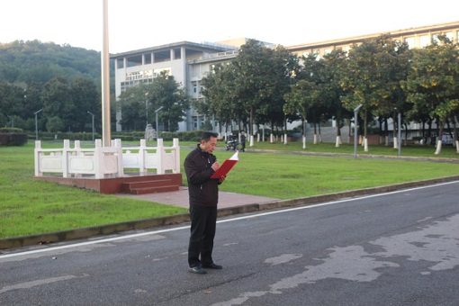 早上7点整,伴随着瑰丽的朝阳冉冉升起,升旗仪式正式开始。国旗班的旗手们迎着温暖的阳光,以饱满的热情,迈着铿锵矫健的步伐缓缓走来,庄严地护卫着鲜艳的五星红旗。在全院师生的注视下,雄壮的义勇军进行曲缓缓响起,同学们齐唱国歌。虽是寒风凛冽,同学们强烈的爱国热情却丝毫不减。