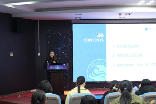 此次培训的主要内容包括新闻写作技巧、微信公众号运营以及加强网络文明素质三方面。首先,方向老师向大家介绍了新闻写作中常用的行文结构,详细讲解了消息的构造以及每一部分的功能和写法。她着重强调了新闻写作中的行文、内容、时效性等方面的重要性,同时通过对比传统媒体新闻标题与网络媒体新闻标题的区别,提出新媒体标题需要更加出彩,这样才能更加吸引读者点进链接阅读。随后方老师还就新闻选题这一问题展开,鼓励大家要有一双善于发现的眼睛,结合往年学校官微创作的一系列创意推送,指出选题要“将社会热点与校园元素相结合,将特定时间节点与新闻工作相联系”。最后,方向老师利用一些日常生活中的例子向大家指出,要积极提升自己的网络文明素养,知法懂法,做一个知网、懂网、能文明用网、会合理用网的新时代大学生。