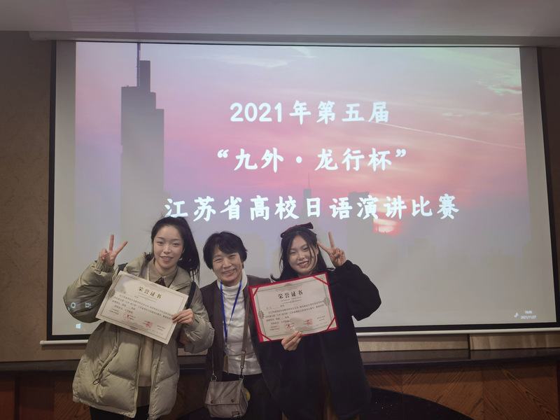 11月27日,由中国日语教学研究会江苏分会主办、南京林业大学外国语学院承办的第五届江苏省高校日语演讲大赛在南京国际展览中心落下帷幕。我校日语系学生申宇、许璐在林明月、夏小珍两位老师的带队下,斩获一等奖、二等奖。