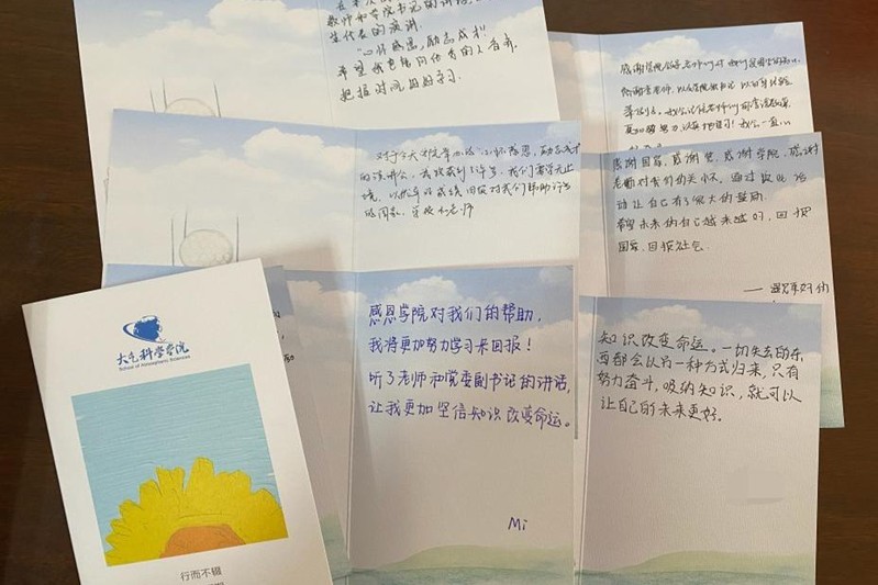 活动最后,李京笃老师和张皓副书记为学生代表发放冬季送温暖慰问物资,同学们在专属卡片上写下对国家、学校、学院以及老师们的感谢和祝福,表明了自己立志成才的决心。
