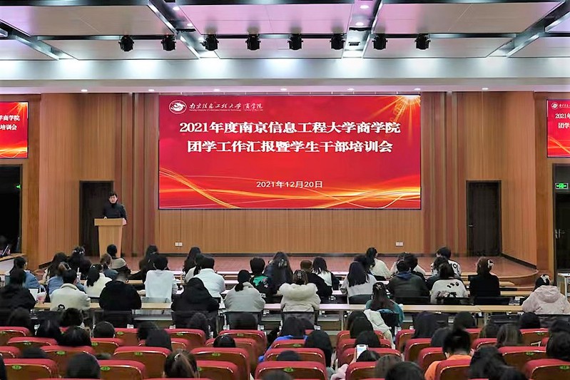 为提升学生干部素质能力从而更好地服务同学,商学院于12月20日晚六点半在滨江报告厅举行2021年度团学工作汇报暨学生干部培训会。商学院党委副书记、副院长陈银,分团委书记史恒及主要学生干部参加了本次会议。
