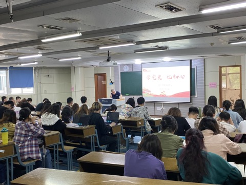 老党员陈书记以人民英雄纪念碑碑文为引,从太平天国运动到救亡图存到渡江战役,带领大家一起回忆新中国成立的艰难历程。从恩格尔系数变化回忆改革开放取得的显著成就,凸显当今幸福生活的来之不易。没有共产党就没有新中国,中国共产党成立后,领导中国人民从站起来、富起来到强起来,我们必须毫不动摇坚持中国共产党领导。他接着讲到,党的十八大以来,中国特色社会主义进入新时代,取得历史性成就和历史性变革。党的十九届五中全会审议通过《中共中央关于制定国民经济和社会发展第十四个五年规划和二〇三五年远景目标的建议》,描绘了我国进入新发展阶段的发展蓝图。中华民族正在迈向伟大复兴的光明前景,广大青年学子要在党的领导下与时代共进,与祖国同行。他又以中国在航天、深海等领域取得的重大技术突破和科技成就为例,强调科技创新重要性。用毛泽东《沁园春长沙》中的“书生意气,挥斥方遒”为引,鼓舞青年人要有远大的抱负。希望同学们在百年未有之大变局中,珍惜学习机会,将来科技报国。陈书记声音铿锵有力,将理论与具体历史事件相结合,并吟诗助兴,迎来同学们热烈的掌声。