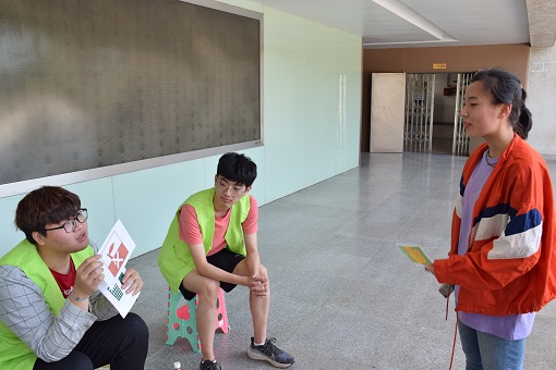 “和谐万物·美丽校园”环境日校园行也在6月5日举行,校园行的起点和终点设置在学科一号楼,路线设计途经滨江楼南国旗台、天鹅湖亲水平台、大学生活动中心、东苑旗阵、体育馆等五个主线任务点。各任务点设有必答题,活动另设有两个隐藏打卡点,找到隐藏打卡点可减少团队用时时长。在各个打卡点,参赛队伍挑战了环保标识辨识、南京市标志性景观你说我猜、飞花令、跳长绳与投壶等项目,最终完成任务的所有队伍回到学科一号楼,校园行以完成任务所用时间进行排名,所用时间最短者获胜。活动极大地考验了默契配合程度以及对南京各地标性建筑的了解,增强了同学们的文化素养与身体素质。