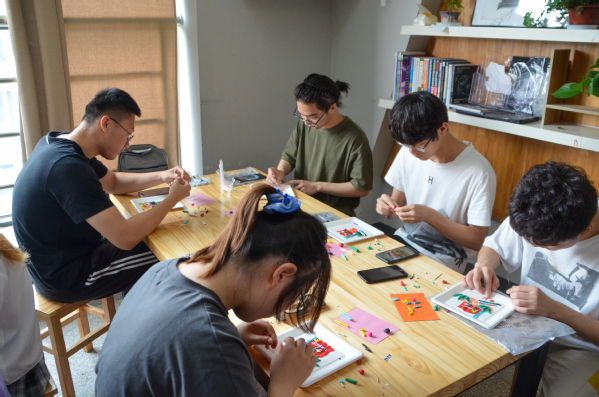 之后,在钱老师的带领和展示下,在场师生共同制作具有红色艺术特色的建党一百周年纪念画卷。钱老师强调,在制作技巧上要把握了良好的分寸感,做成形但不做足,以充分发挥面的特性,体现面的质感,自然天成、朴实浑厚、栩栩如生,令人爱不释手。一个多小时后,同学们就完成了一幅幅对建党一百周年的美好祝愿的画卷,并一起拍照留念,记录下这一美好时刻。