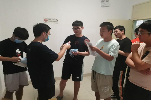 在男生宿舍分发防疫物资