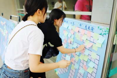 校园氛围营造是教师院迎新工作的一抹亮色。“呼啸而过的青春,翩翩而至的你!” “super idol的笑容,都没教师院里你的甜。”揽江楼前、宿舍楼旁,鲜活的迎新手牌和生动的横幅标语,向新生送上了入校后的第一句问候。志愿者们还在小黑板上绘制了精美的迎新板报,并悬挂在每一间新生宿舍门上,用最具师范生特色的方式,表达着对萌新的热忱欢迎。