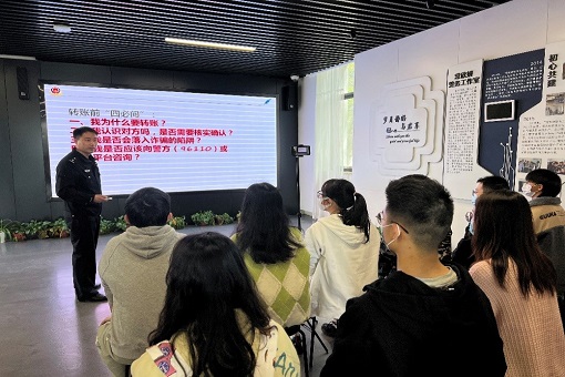孙警官首先强调,随着信息技术的进步,许多诈骗分子都将目标转向防备心较弱的大学生,犯罪分子利用一些大学生虚荣、单纯的心理特点实施诈骗,使部分学生蒙受巨大的财产损失和精神压力。随后,孙跃警官结合案例重点讲解了高校诈骗案件高发类型,包括兼职刷单、裸聊诈骗、冒充公检法机关等,用具体的事例为同学们敲响了警钟。接着,孙警官向同学们传授了一些防诈骗方法:保护好个人信息、不轻信来路不明的电话、不随便向陌生人转账、不下载不明软件等,如果发现被骗要沉着冷静,及时报警,及时止损。最后,孙警官为大家分发了校园防诈骗宣传单页,各班宣传员将进一步在本班开展相关宣传教育。