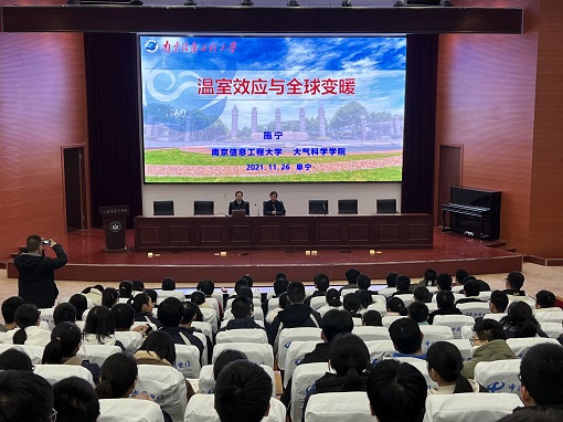 为加强学校与重点优质生源中学的交流合作,11月26日,大气院由施宁教授带队前往江苏省阜宁中学开展优质生源基地回访工作,并面向高三学生进行科普讲座和招生宣传活动。