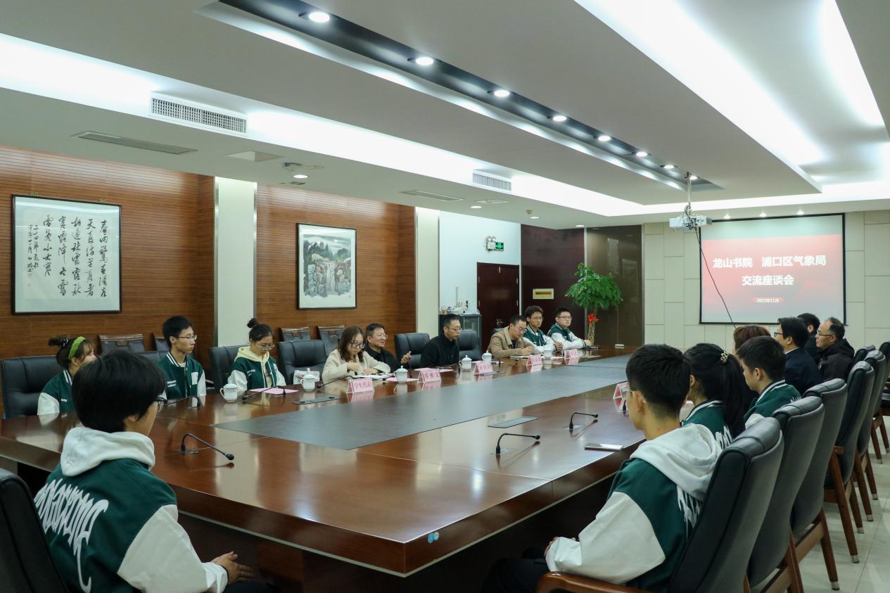 参观学习结束后,书院和浦口区气象局就进一步深化合作开展了交流座谈。浦口区气象局党组书记、局长陈建东首先对大家的到来表示欢迎,感谢南信大为气象事业发展输出大批优秀人才,强调气象局将秉承“监测精密、预报精准、服务精细”的理念,希望加强与龙山书院的合作,逐步探索局院共同合作发展的新模式。接着,唐国跃向与会人员介绍了龙山书院的基本情况、育人理念、教学改革等, 指出龙山书院是学校大类招生人才培养模式的创新,是学校教育改革的创新,希望加强与气象部门的联动,提供给学生更多有利的指导,培养出更多创新型气象人才。学生们就未来发展、创新创业、专业技能等方面与气象部门工作人员进行了交流。最后局院双方签署校外实习实践合作协议并挂牌。
