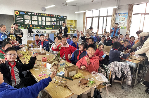 支部成员王珺雨同学首先为九龙小学的小朋友们介绍了关于节能减排的知识及意义,深入浅出地讲解了保护环境的重要性。随后,党员同学和小学生们一起利用废塑料瓶、旧纸盒、树叶、吸管等物品制作了船舶模型、装饰树等手工艺品。活动现场气氛轻松活泼,不时传出阵阵欢笑。通过活动,小朋友们既收获了精美的手工艺品,更感受到了变废为宝的乐趣,增长了节能减排的知识,理解了环境保护的重要意义。