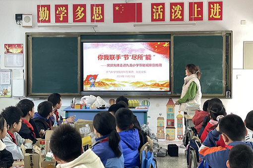 为宣传节能减排及绿色发展理念,搭建党员服务平台,近日,大气科学学院本科生第四、第九党支部前往南京市九龙小学,联合开展节能减排宣传活动。