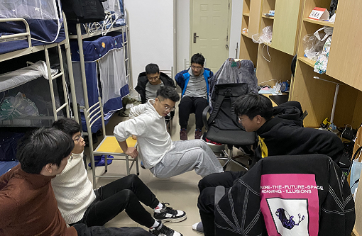 最后,何培老师、方鑫炎同学带领大家学习了简单的放松运动,帮助同学们缓解身体疲惫,调节情绪,阳光备考。大家借助宿舍原有设施,一边伸展四肢,一边互相交流,氛围轻松愉悦。