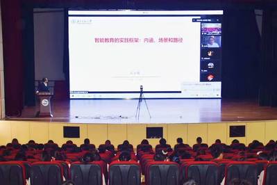 武法提教授的报告主题为《智能教育的实践框架:概念、场景、路径》,他讨论了智能学习环境的概念、应用场景及实施路径,并从智能教育实践问题出发,以服务驱动、应用驱动、数据驱动为基本原则,介绍了“教、学、管、评、测、研、服”等全链条的智能教育场景,以及智慧校园建设中以“一网络、一平台、一中心”为核心的实践路径。郭炯教授以《教师人工智能教育应用素养框架》为题,首先指出当今教学环境呈现出向着多媒体学习环境和混合学习环境的方向发展的趋势,并阐释了人工智能赋能教师的理论基础、表现形态和人机协同背景下教师智能教育素养框架。吴伟伟经理的报告题目为《浅谈VR的发展与应用》,他结合VR技术在教育领域中的应用案例,围绕历史脉络、特征、应用场景、分科教学等视角,介绍了VR技术对教育发展的影响作用。