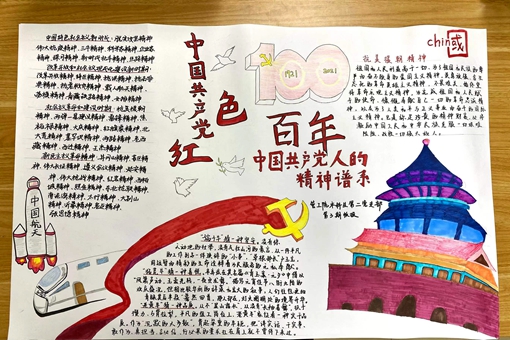 中国共产党经历了一百年的风风雨雨,党的事业取得了巨大的历史成就,在长期奋斗中构建了中国共产党人的精神谱系。它们是党的历史的生动写照,是党的宝贵财富,是值得所有共产党员学习的重要内容。全体党支部同学在支部书记的带领下认真学习党的百年奋斗经验和历史成就,支部党员同志纷纷表达了自己在理论学习后的想法,在热烈的讨论中确定了本期板报的主题——中国本色“中国红”。其中,杨欣同学认为孺子牛精神是一种坚守、拓荒牛精神是一种喜悦、老黄牛精神是一种品质,它们启示着共产党人要无私奉献、开拓创新、艰苦奋斗。支部党员同志各抒所长,合理划分了绘画区、文字区、素材搜集区,对板报绘制工作自行分工。大家积极参与、同心同力,共同完成了本期板报的绘制,洁白的和平鸽、象征中国速度的高铁、中国航天精神、庄严的天安门广场城楼、中国风的天坛景点悄然跃然纸上,板报插图设计精美、寓意绵长,文字内容丰富,版面布局新颖,最终呈现效果精彩生动,获得了老师同学们的称赞。