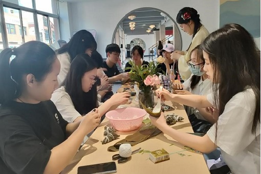 首先,张皓老师代表学院为同学们送上节日祝福,祝愿大家端午安康,也希望通过此次活动让大家感受到学院的温暖和关怀,为毕业生留下别样的端午记忆。随后,同学们一起学习包粽子,体验传统民俗文化,共迎端午佳节。包好粽子,同学们又学习了做花蛋,漂亮的叶子附在鸭蛋上用纱布包紧煮熟,鸭蛋上便可印出叶子的纹理,代表学院祝福大家能够“吉祥如意”。等候的同时,同学们还一起学习用彩绳编织蛋网,在大家的欢声笑语中,一个个花蛋制作完成,现场充满了浓浓的端午节日氛围。最后,老师和同学们合影留念,毕业生们纷纷表示,这是一次愉快又难忘的端午节,学院给予的温暖将永远记在心间。