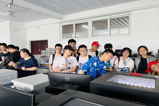 欢迎仪式结束后,全体师生在志愿者的带领下,分组前往电信院实验室、见山园、气象台和天鹅湖进行参观学习,沿途领略信大风采,以脚步丈量信大宽度。在实验室,依靠编程技术切换不同形态的机器人引得师生们一片赞誉,亲身体验的3D打印技术让同学们倍感新奇;在见山园,精美的雕塑展览与深刻的文化寓意引得同学们驻足流连;在气象台,讲解员对气象观测设备、气象观测原理以及气象探测预报所作的生动科普,在两所学子心中埋下了气象的种子;在天鹅湖,碧波荡漾的湖水与互相嬉戏的天鹅,加深了他们对南信大美丽校园的广泛认同。