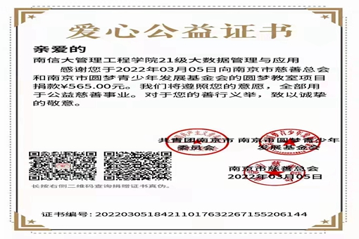 据了解,爱心义卖活动由2021级大数据管理与应用专业1班团支部发起,得到了学院青协、2021级保险1班团支部等部门的支持与配合,收获满满,所得善款565元已全部捐赠南京市慈善总会和南京市圆梦青少年发展基金会圆梦教室项目。“我们将积小成大,把义卖活动作为班级特色项目,扎实推进学雷锋办实事活动入脑入心,用实际行动诠释‘雷锋精神,人人可学;奉献爱心,处处可为’ ”,项目发起人陈延毅说道。