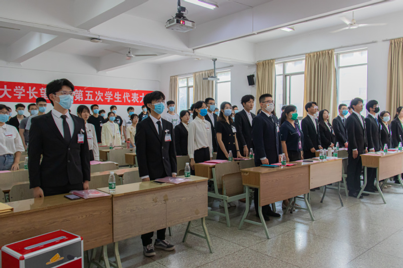 大会最后一项议程,全体起立,奏唱校歌,在悠扬的歌声中落下帷幕。此次大会是全体长望学院学生的盛会,学院团学组织也在大会上充实了新鲜能量,学院团学工作也将继续为学院、学校发展继续贡献青春力量!