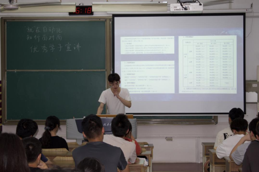高山仰止,景行行止。拥有卓越成就的人总是吸引我们向他靠拢,而榜样的力量往往也能正向作用在后浪身上。6月6日下午,自动化学院于滨江楼开展了“就”在自动化,知行面对面系列优秀毕业班学子经验分享活动。旨在通过2018级优秀学长学姐的分享,为大一大二同学在生活上提供帮助,在学业上进行指导。本次经验分享会由2018级优秀毕业生王俊杰、贺颖雪主讲,大一大二部分同学参加。