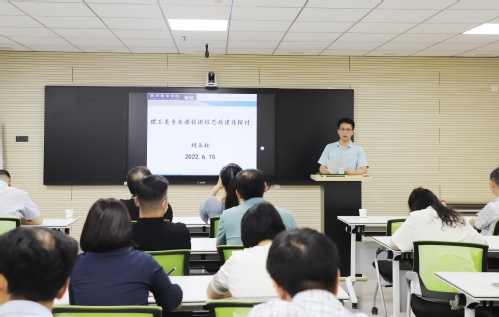 教师教育学院副院长、党总支统战委员刘玉柱教授为全体党员老师做了主题为《理工类专业课程课程思政建设探讨》的专题党课。他分享了课程思政建设心得,总结了理工类专业课程在课程思政建设方面的着眼点,按照理工科课程特点,应着重挖掘反映科技工作者优秀品质的案例,引入中国科研人员在相关学科中的重要贡献。结合《光谱学与光谱技术》课程思政的建设经验,刘玉柱从弘扬科学工匠精神、增强民族自豪自强、宣扬生态文明建设、增强爱国荣校情感四个方面生动形象的讲解了一些思政教学案例。