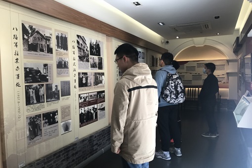 活动开始,同学们们依次参观了现存办事处旧址和叶剑英、李克农等在此处居住办公的珍贵历史资料,了解了短暂存续三个多月的八路军驻京办事处对推进国共合作、宣传我党和军队抗日主张的重要意义。一幅幅珍贵的历史照片,把同学们的思绪又带到了战火纷飞的抗战年代。老一辈无产阶级革命家在国民党白色恐怖下不畏艰险、顽强斗争的精神感染了每一位同学。