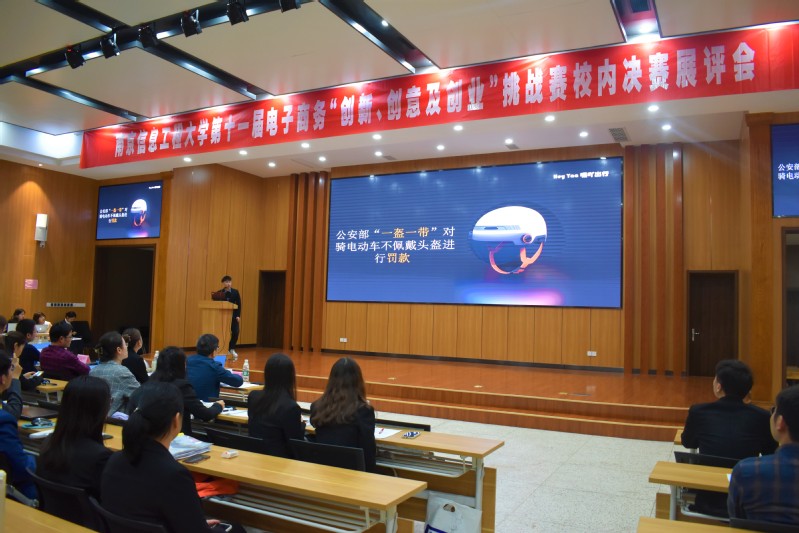 4月26日下午,南京信息工程大学第十一届全国大学生电子商务“创新、创意及创业”挑战赛校内决赛在滨江报告厅举行。本次赛事邀请了教育部电子商务教学指导委员会委员、南京财经大学管理科学与工程学院党委书记倪明教授,南信大藕舫学院副院长、教务处副处长葛昕明副教授,南京邮电大学管理学院院长助理王娟副教授,南信大商学院副院长于波副教授、翁莉副教授担任评委。“三创”挑战赛全体参赛人员以及部分学生代表参与这次展评会。