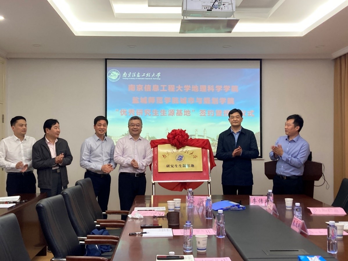 5月11日下午,我校地理科学学院与盐城师范学院城市与规划学院举行“优秀研究生生源基地”签约暨授牌仪式,会议在北辰楼地理科学学院会议室举行。盐城师范学院城市与规划学院院长李传武、副院长朱天明、地理科学系系主任刘玉卿、骨干教师蒋玉波,地理科学学院院长姜彤、党委书记梁成、副院长沈润平、副书记涂皛星、副院长王国杰、人文地理与城乡规划系系主任王慎敏出席会议,会议由姜彤主持。