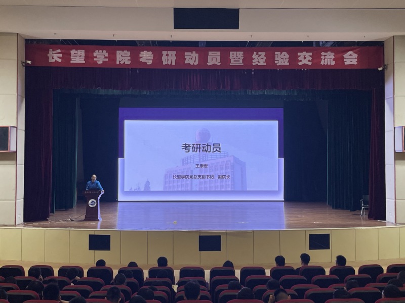 为了让同学们深入了解考研流程,熟悉考研注意事项,长望学院于5月13日在大学生活动中心剧场举办了考研动员暨经验交流会。大会由长望学院学生办公室主任高婷亭主持。
