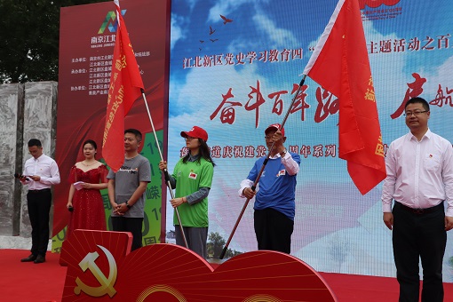 为庆祝建党一百周年,引导青年学子学习百年党史,传承红色精神,推进党史学习教育融入新时代文明实践服务活动,5月23日上午,大气院学生代表在“红润盘城”党建教育基地宣誓广场参加了江北新区党史学习四“百”系列主题活动“奋斗百年路,启航新征程”——“红润盘城”党建品牌发布暨盘城街道庆祝建党100周年系列活动启动仪式,大气院红色宣讲团接收街道授旗,并与共建单位江北社区组成方阵,完成百里新区奋斗路健步走活动。