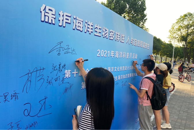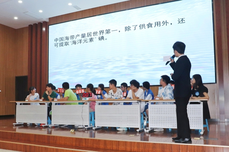 本次活动主要面向在校本科生,分为初赛和决赛两个阶段。初赛采用了线上答题的方式,吸引了600多人参与,最终有24名选手入围决赛,决赛主要包括“争分夺秒”、“背水一战”和“超级演说家”三个环节。赛前,评委老师、参赛选手及观众在现场进行了签名。决赛第一环节要求参赛选手们在规定的时间内完成30道答题,结合答题正确率和速度进行排名,以此了解他们海洋知识的储备情况;紧接着,在“背水一战”环节中,多变的题型对他们的反应力和思维的缜密性提出了挑战。选手们快速精准的答题和广博的知识储备引起了台下观众的阵阵掌声。前两个阶段得分累计排名前五的选手——孙宇轩、侯佑壮、沈嘉炜、王钰琳和张馨进入第三个演讲环节。五位选手围绕“海洋,我们的气候和天气”、“保护海洋,人与自然和谐共生”、“海洋与可持续发展”等选题分享了自己对海洋与自然、海洋与生态等方面的认识和感悟。整个赛程紧张激烈,三大环节激动人心,台下观众也积极参与到“观众共同答题”环节。每个环节结束后都设有抽奖环节,所有初赛参与者都有获得奖品的机会,为活动增强了互动性和趣味性。