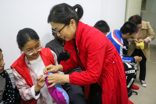 活动一开始,东苑社区经理叶明娟老师为同学们作关于缝补工具历史变迁的文化介绍。然后由本次课程的主讲老师毛升翠阿姨为同学们具体讲解和展示缝补技能。毛阿姨针对裤脚长改短、裤腰大改小、衣服炸线缝补等日常生活中最常见的缝补需求,采用细致讲解和现场示范相结合的教学方式,把多年的裁缝经验和缝补小窍门毫无保留地分享给同学们,在同学中引起强烈反响。到了实践操作环节,同学们已经是跃跃欲试了,从穿针引线到收口打结,现场的老师们手把手地指导每一个技法,整个活动过程中同学们都很积极地与阿姨交流。同学们手持缝衣针,有模有样地认真缝补着,生疏的手法渐渐变得娴熟起来,当看到自己完成的小作品时,收获的喜悦跃然脸上。不少同学感叹,学会了缝补技能,以后再也不用去裁缝店了!