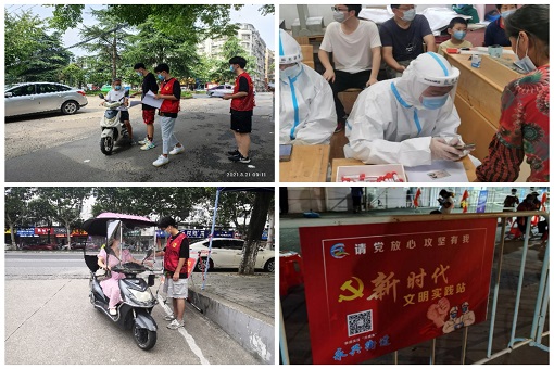 此外,在2021年7月的新冠疫情防控工作中,环科院学子自发成立了“青年突击队”,共14位同学,利用暑假时间,在南京、连云港、南通等7个地区参与防疫志愿服务。环科学子用认真负责、吃苦耐劳的精神品质感染人,用实际行动践行了习近平总书记对青年大学生的嘱托,为当代大学生树立了标杆,激励着广大青年要肩负历史使命,坚定前进信心,立大志、明大德、成大才、担大任,让青春在为祖国、为人民、为人类的不懈奋斗中绽放绚丽之花。