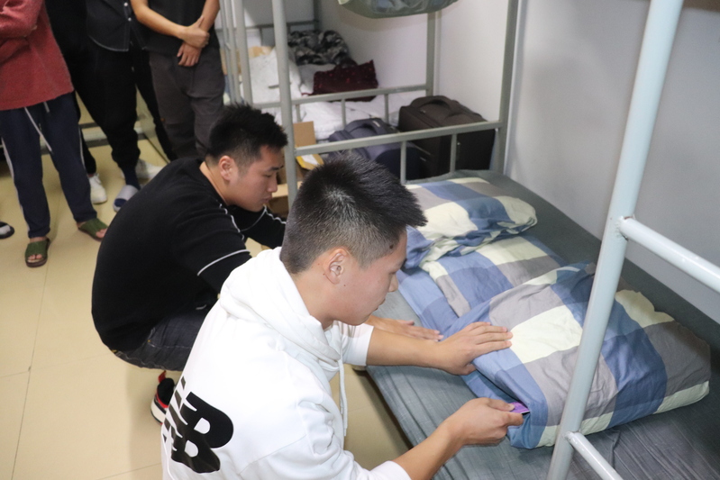 11月24日下午,10名退役士兵学生分别走进2021级少数民族预科新生的寝室,为同学们展示了什么是军人内务标准。他们全程亲自示范,边操作边讲解。对折尺寸、折叠手法、掏平压实、叠出棱角……从如何将被子折成完美的“豆腐块”,到各种生活用品的摆放和收纳。在退役大学生们的耐心指导下,大家欢声笑语,一起动手,将宿舍变得干净整齐,井然有序。少数民族预科班新生还一同学习了环境卫生、宿舍保洁的标准,寝室内务整理工作取得显著效果。