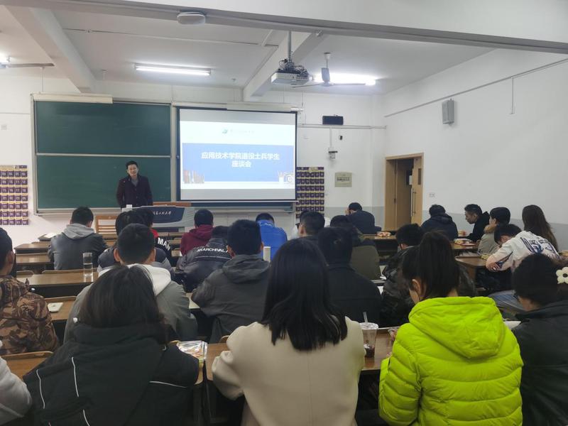 为深入了解退役士兵大学生的学习、生活等方面的情况,进一步加强思想教育和服务管理,助力其继续成长成才,续写大学新篇章,12月10日上午,应用技术学院在揽江楼N303召开退役士兵大学生座谈会。学院党委副书记、副院长卢愿清,学办主任李俊平、学院辅导员及19级50名退役士兵学生参加了座谈。座谈会由学办主任李俊平主持。