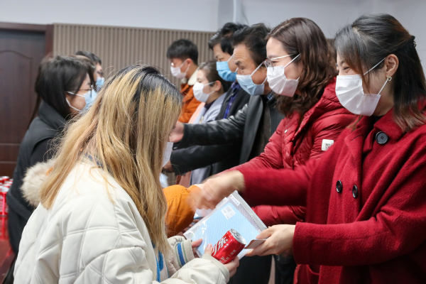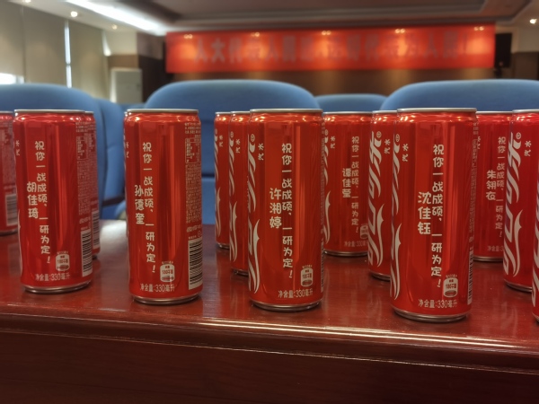 之后院领导和老师们共同为同学们发放考研“福袋”(文具袋)和印有每位考研学子姓名的“考研必胜杯”。詹筱茹老师带领全体考研学子高声喊出“诚信考试、考出佳绩”的誓师口号,师生共举“考研必胜杯”,并在考研誓师榜上签下了自己的名字并合影留念。