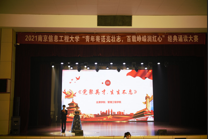 决赛现场各参赛学院准备充分,表现各有千秋、精彩绝伦。管理工程学院以“党聚英才,生生不息”为主题,声情并茂地展示了不同时期中国共产党的大批优秀人才为党和国家的建设做出的巨大贡献;来自龙山书院的五位同学的《今夜你入我梦来》抑扬顿挫地道出“我们的中国梦,青年人的中国梦”,展现出当代青年建设祖国的热情和决心;当来自大气物理学院的施见秋同学慷慨激昂地念出“今天,一个大写的中国,让人读得光明、读得酣畅,今天,一个腾飞的中国,更是让人读得生动、读得自豪”时,民族和国家的自豪感油然而生;来自长望学院的同学们为大家倾情演绎了在疫情期间,医护人员为了战役而做出的不懈努力,铿锵有力的声音将观众们带入了那段艰难的岁月,真切地感受到了医护人员舍生忘死的伟大精神。最终,经过激烈角逐,管理工程学院荣获特等奖,商学院和长望学院荣获一等奖,各个学院都取得了优异的成绩。
