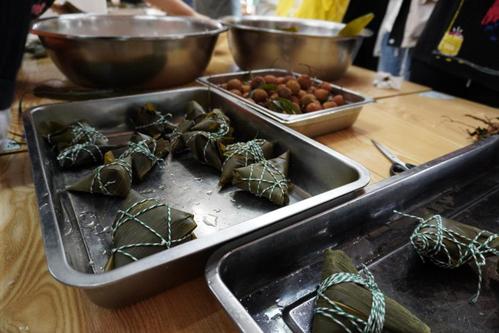 同时,为了让同学们能够更好的体验中国传统节日,领略传统文化的魅力,端午前夕,20应用化学1班在西苑老食堂一楼开展端午节包粽子活动。活动开始前,同学们自学包粽子,不清楚的地方还向食堂阿姨请教,阿姨耐心地一步步教同学们,从洗粽叶到配料扎线,同学们不断交流讨论,欢声笑语萦绕在耳畔。活动中,同学们讲述了不同地区的端午习俗,重温了端午吃粽子的由来和屈原沉江以身殉国的悲壮故事。最后在食堂工作人员的支持下完成蒸煮,学生们共同完成包粽子活动,品尝香甜的节日美食,享受其乐融融的温馨时光。