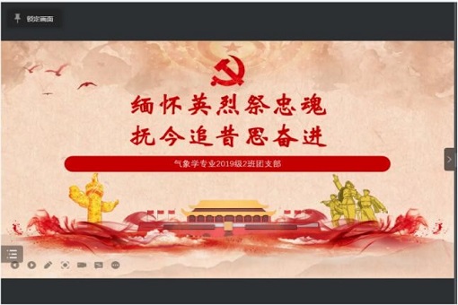 在清明节到来之际,为缅怀革命先烈,弘扬爱国精神,发扬英雄品格,4月4日下午,大气科学学院2019级2班团支部组织同学们开展了“缅怀英烈祭忠魂,抚今追昔思奋进”线上主题团日活动。